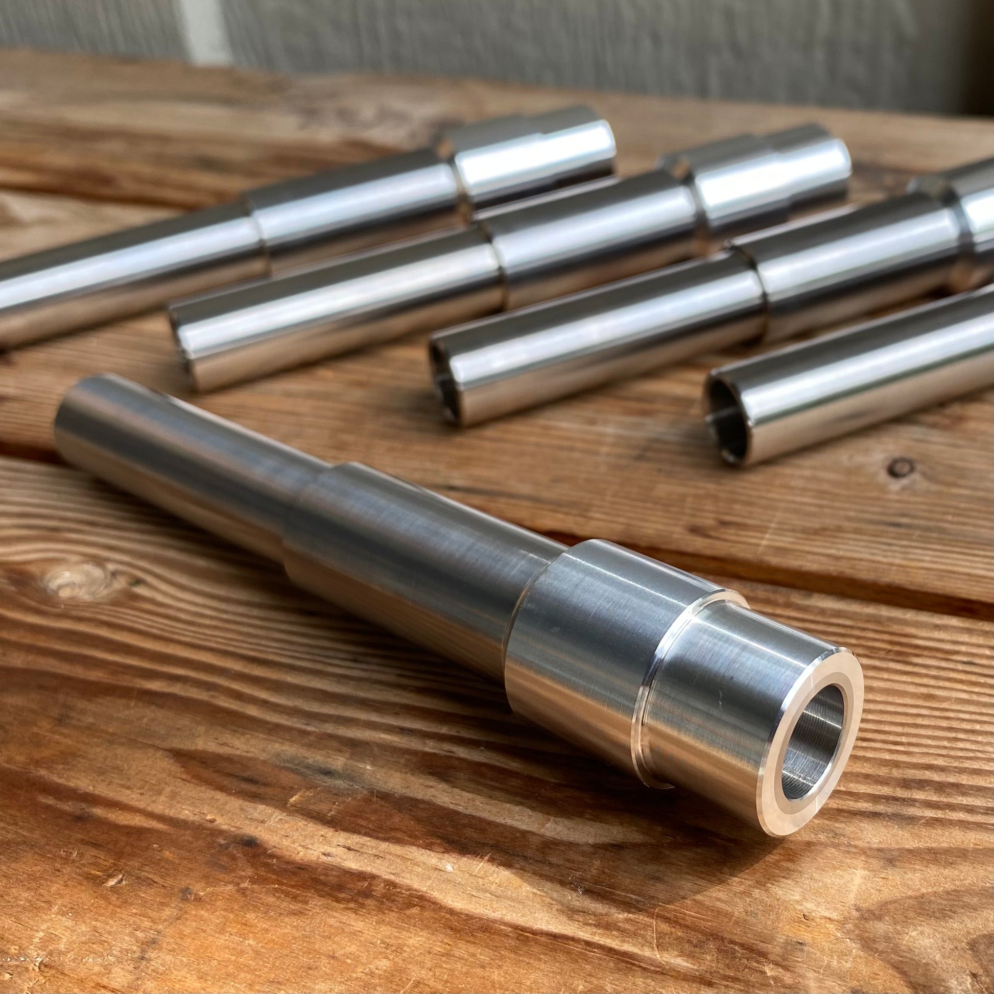 With a wall thickness of only 1.5mm, the stock aluminum part was known to snap at the drive-side bearing shoulder. This upgrade adds a substantial amount of strength, at the cost of a little extra weight.